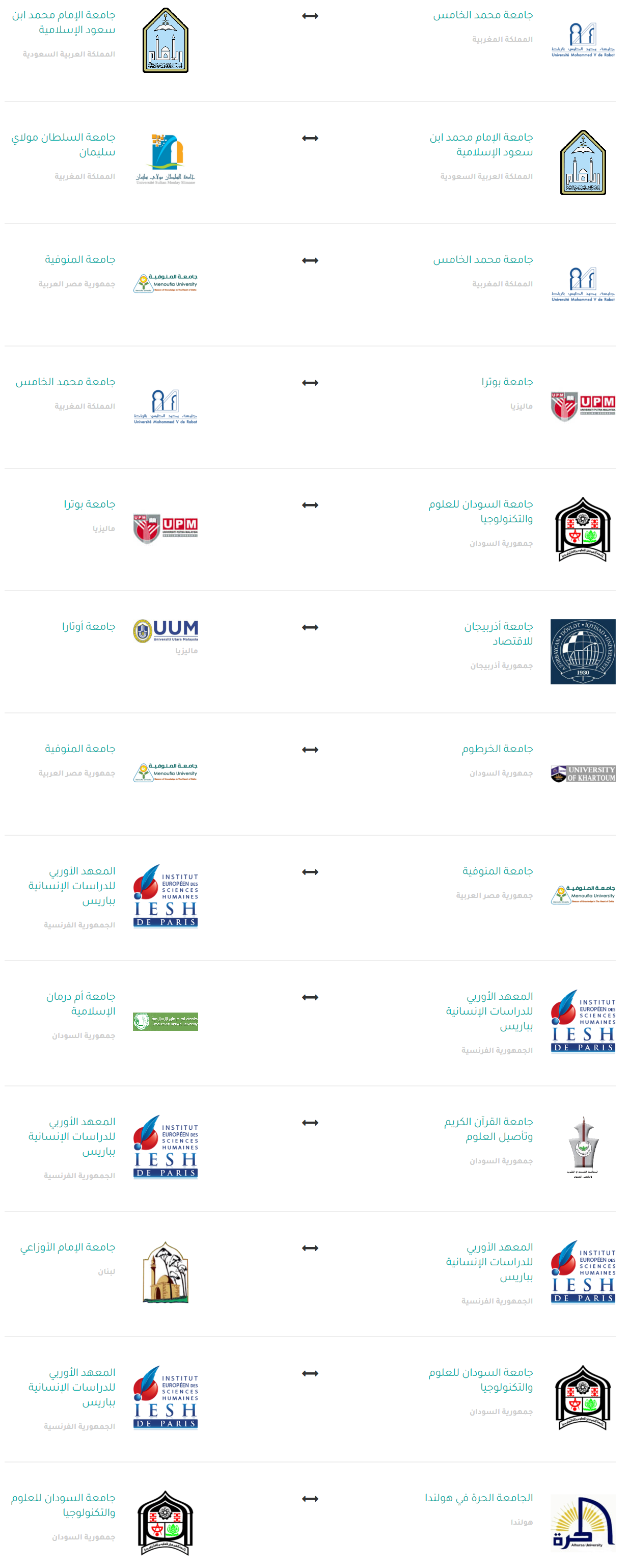 الاتفاقيات الثنائية بين الجامعات الأعضاء